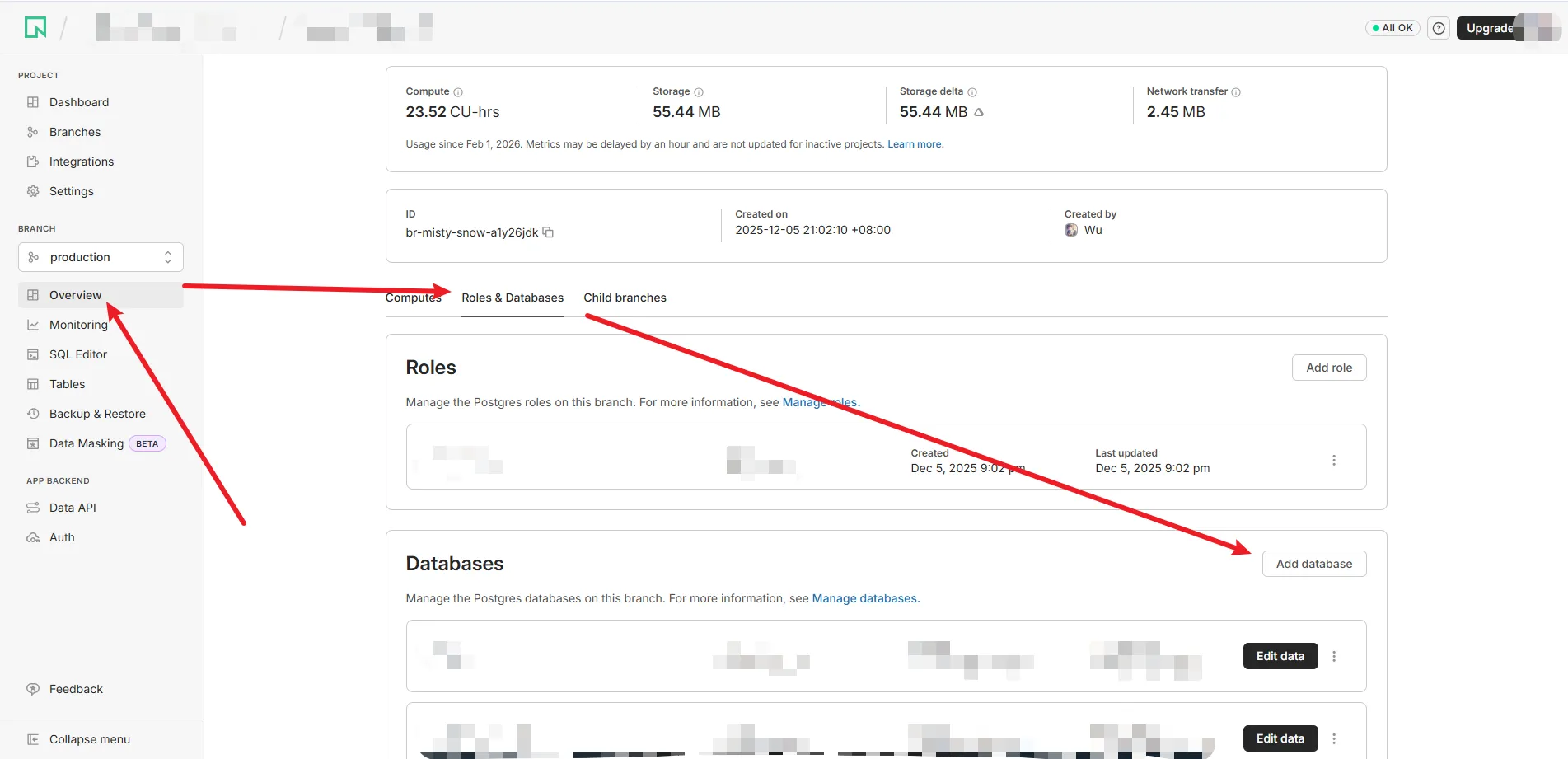 postgresql://neondb_username:npg_password@ep-xxx-bush-xxxx-pooler.ap-xxx-1.xxx.neon.tech/demo-musemvp-com?sslmode=require&channel_binding=requireConfigure the database