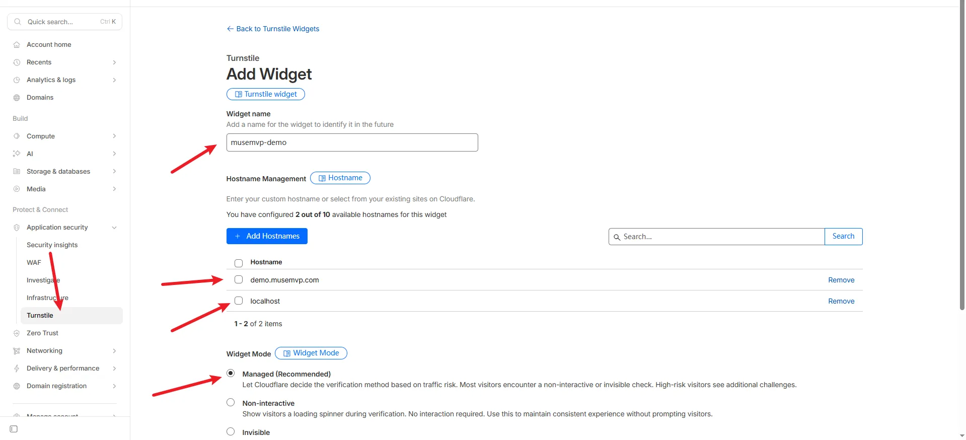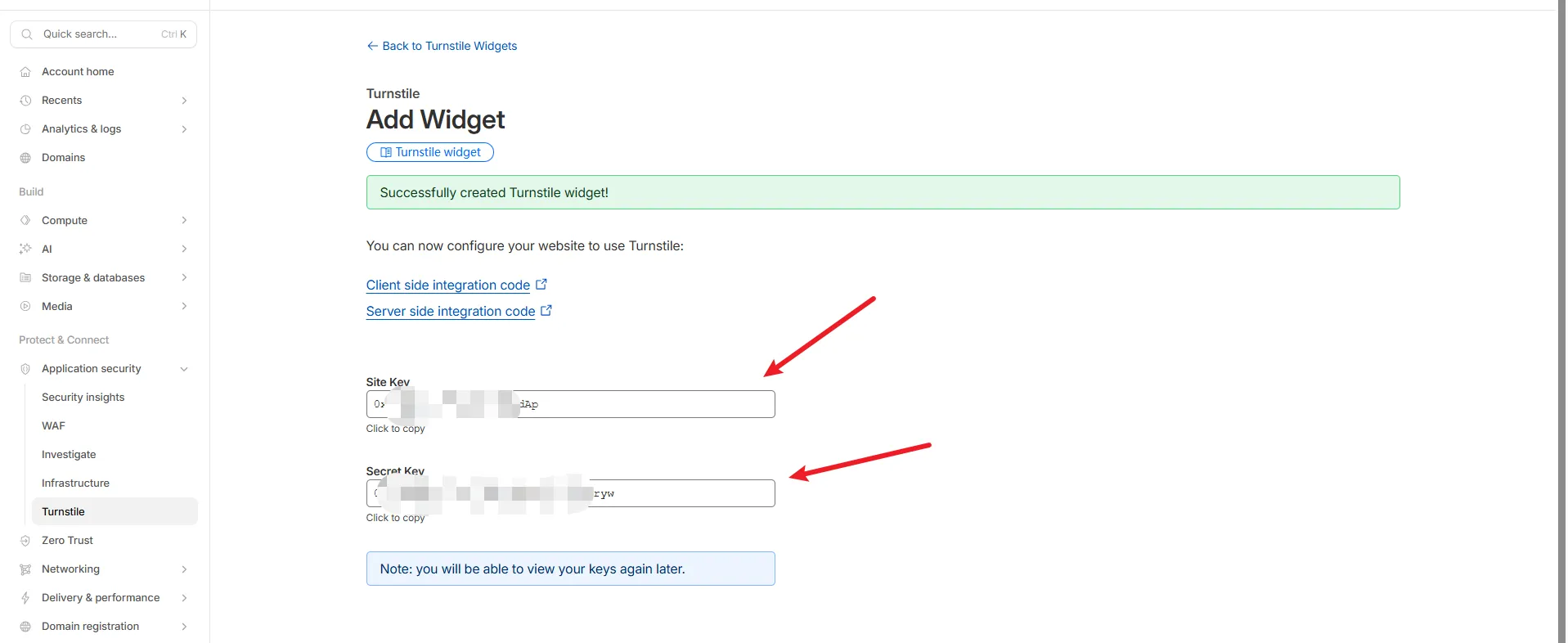 Go to Cloudflare Turnstile and create a site.
